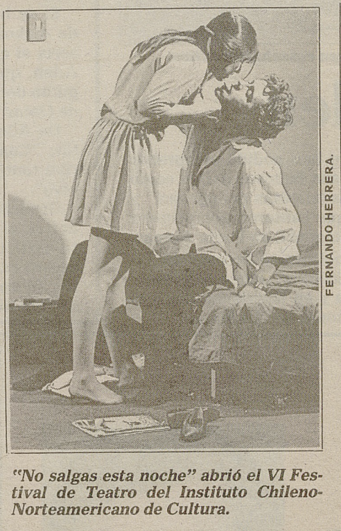 Obra estrenada en julio de 1991 en el marco del VI Festival de Teatro del Instituto Chileno Norteamericano de Cultura.